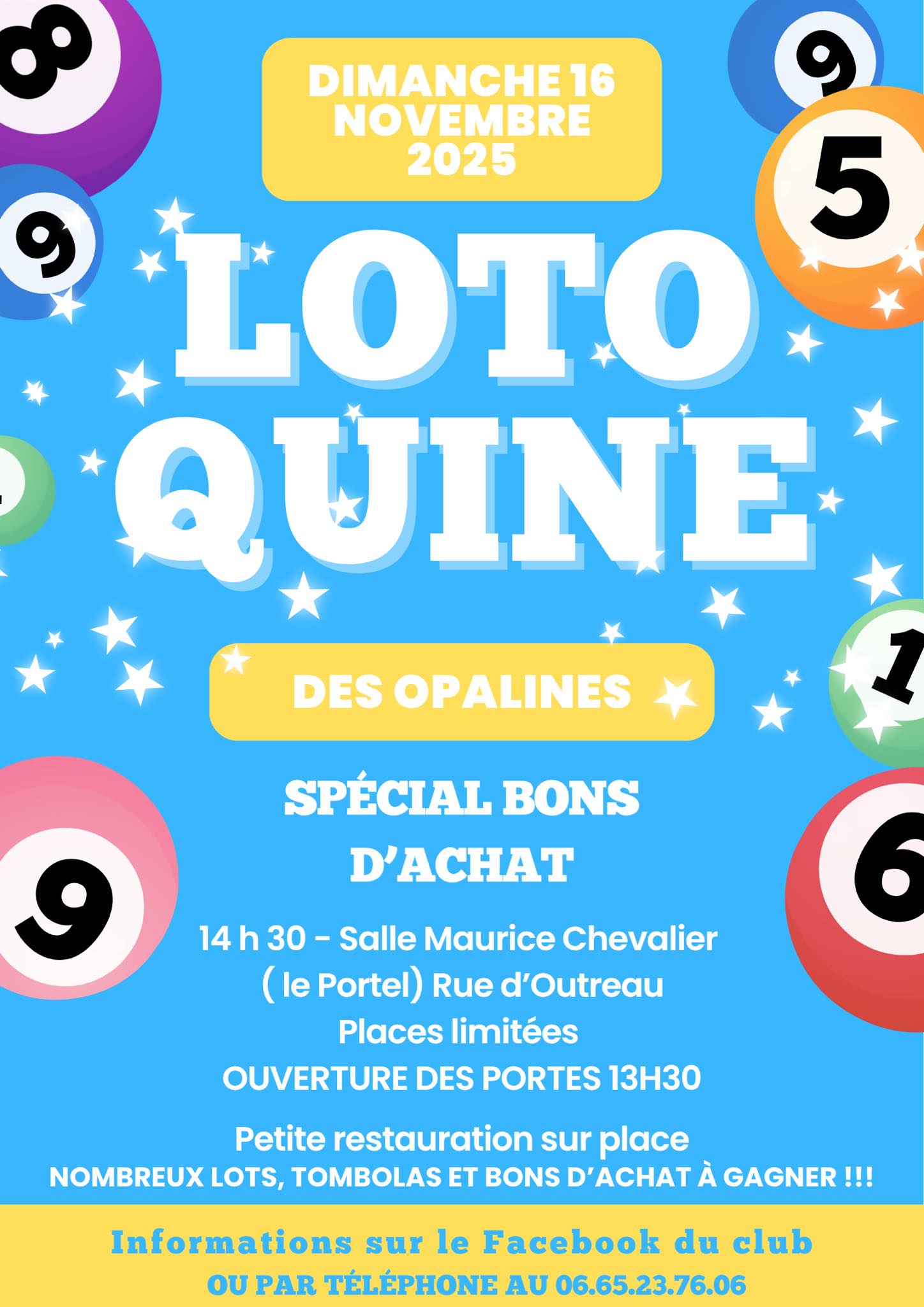 Le loto aura lieu à 14h, salle Maurice Chevalier. Petite restauration sur place, Informations sur le facebook Les Opalines de Le Portel-plage ou au 06 65 23 76 06