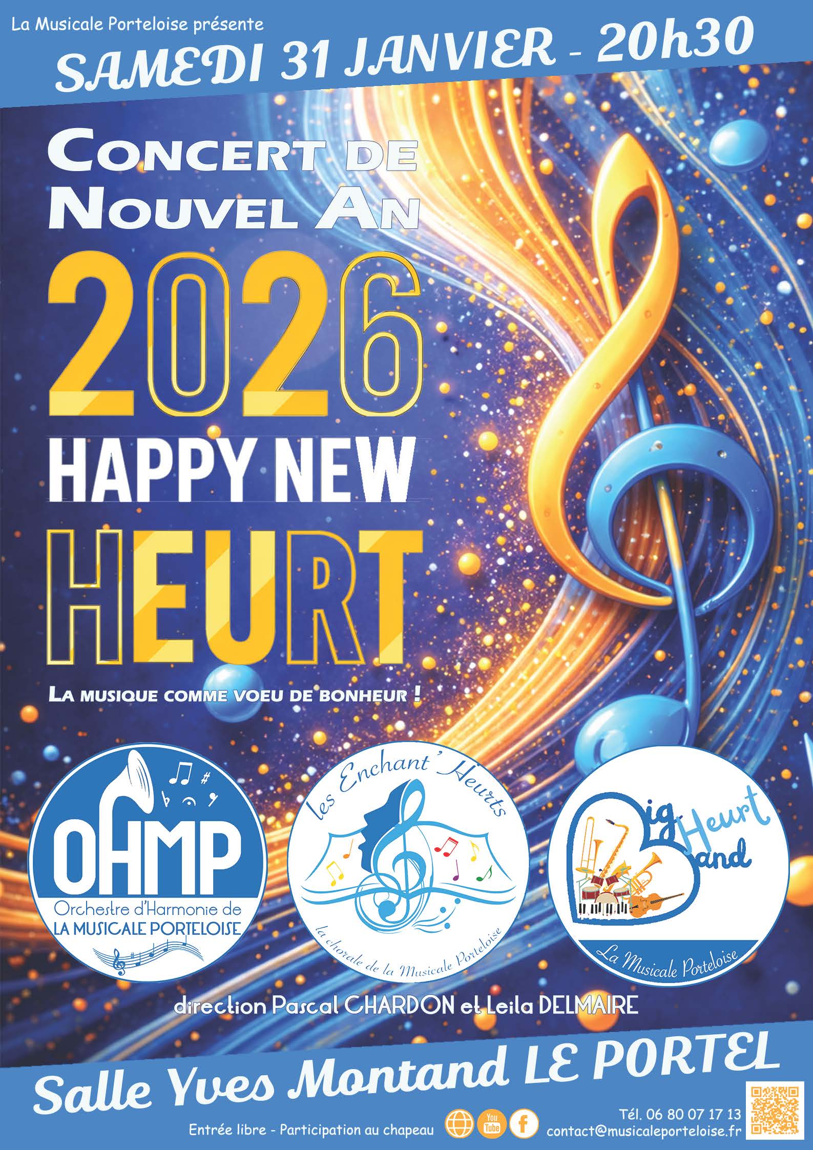 La musicale Porteloise vous souhaite bonne année en musique, le samedi 31 juanvier à la salle Yves Montand, à partir de 20h30.