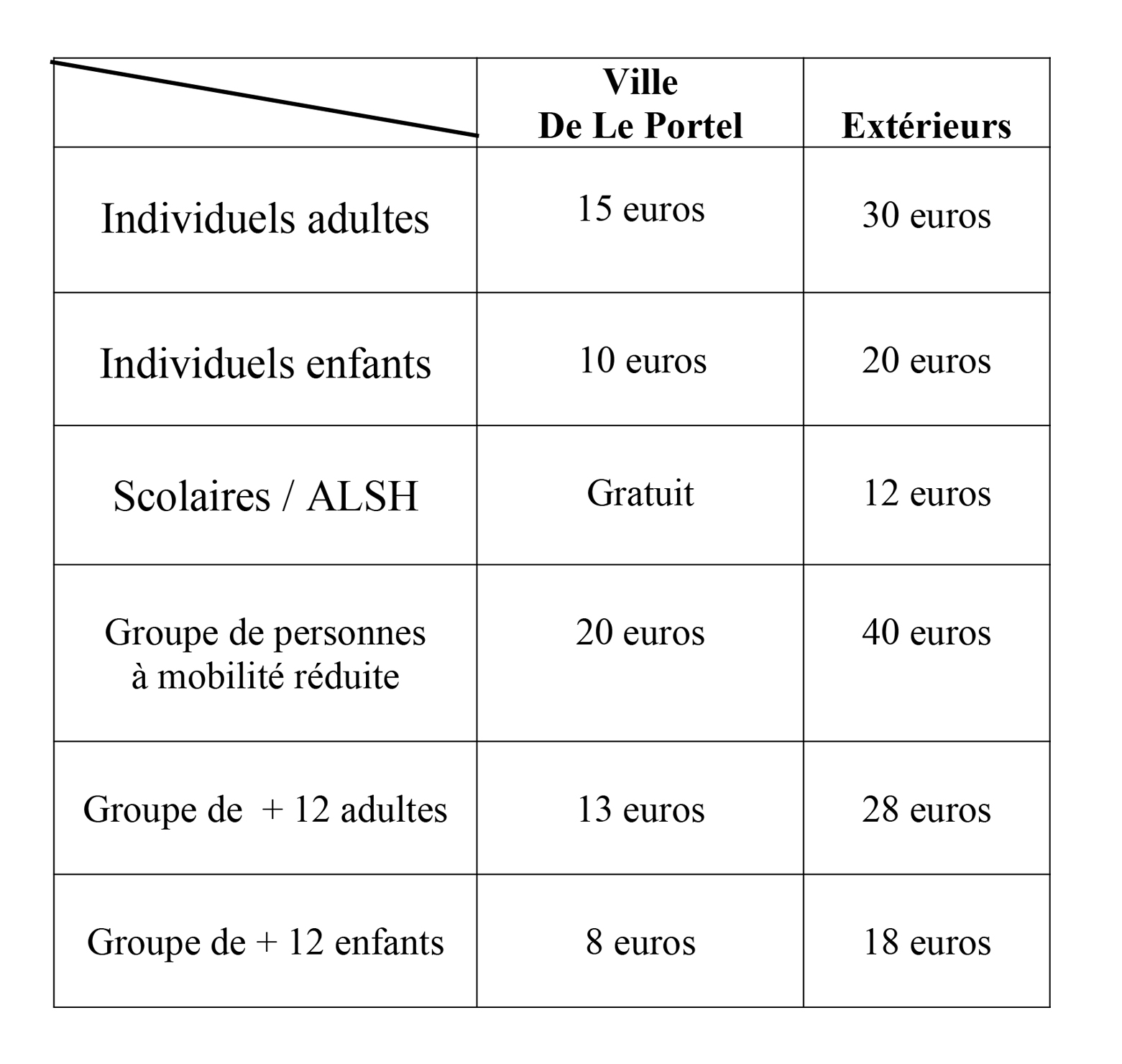 Les tarifs pour une séance de deux heures