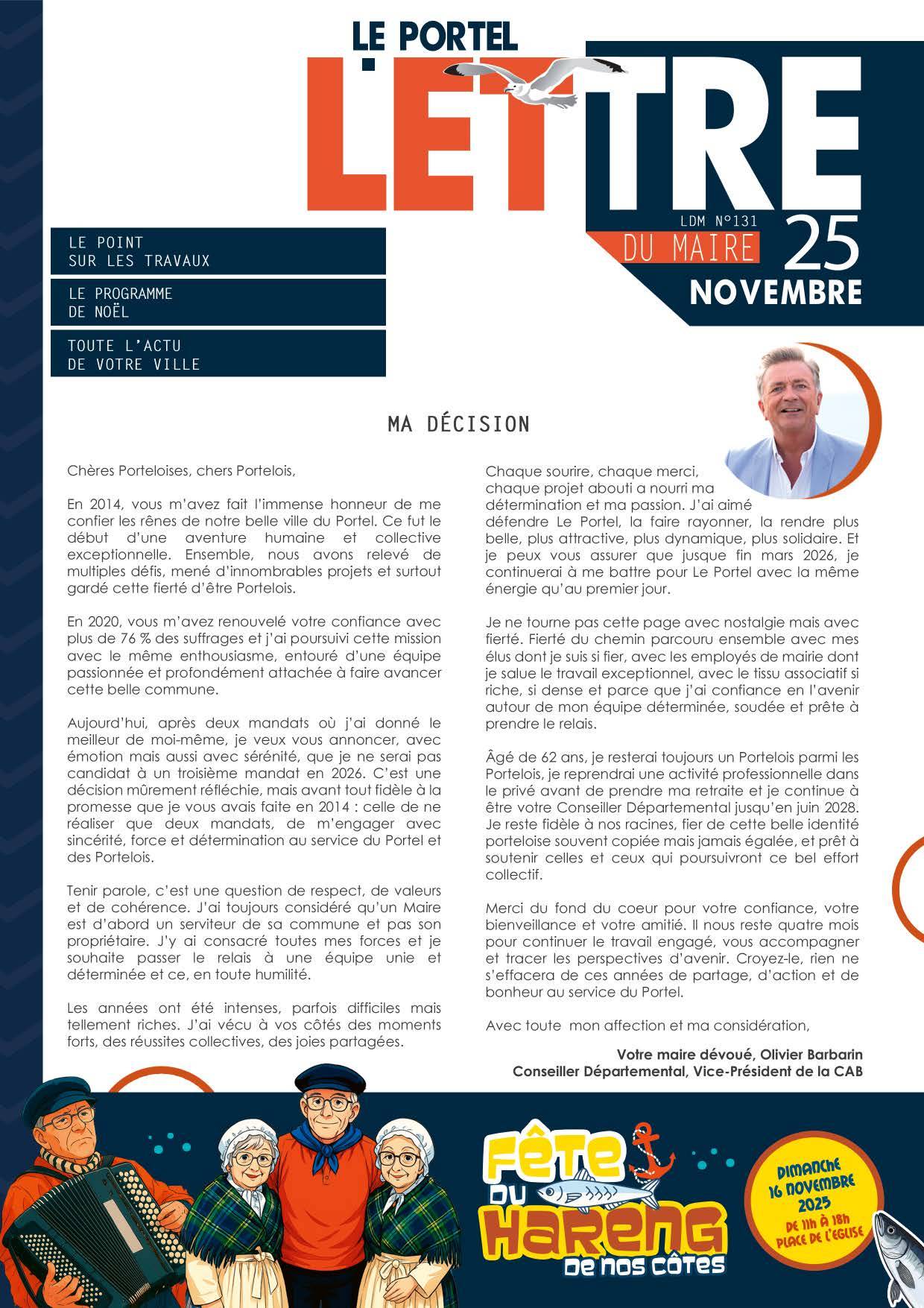 La lettre du Maire du mois de novembre est en cours de distribution. Retrouvez la dès maintenant ici...
